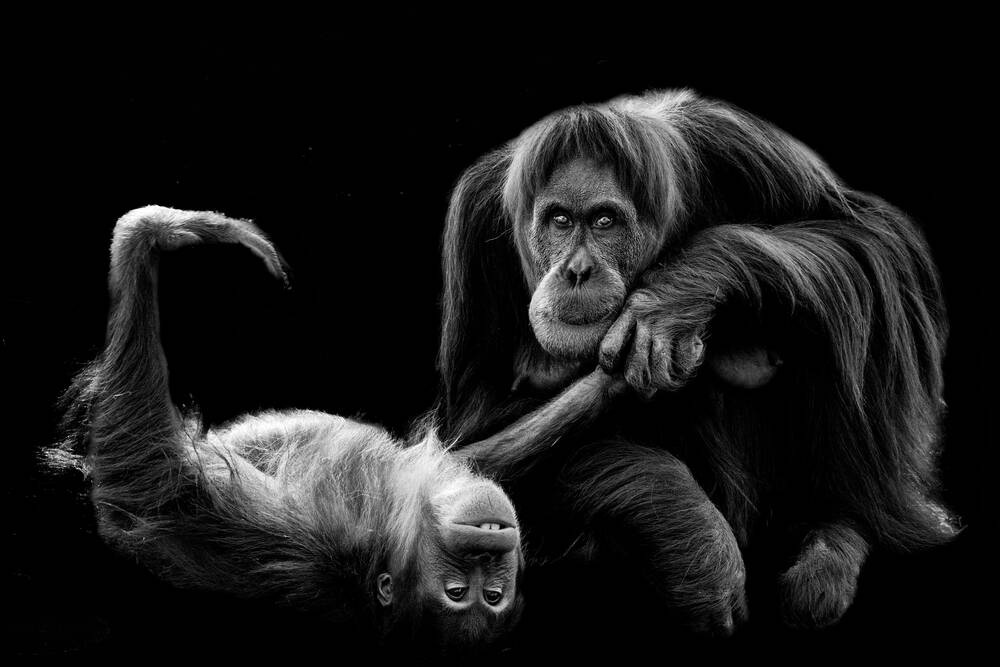 twee orang-oetans, een moeder en haar baby.Foto personaliseren