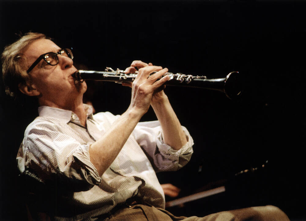 De Amerikaanse regisseur en acteur Woody Allen speelt klarinet. 1990s.Foto personaliseren