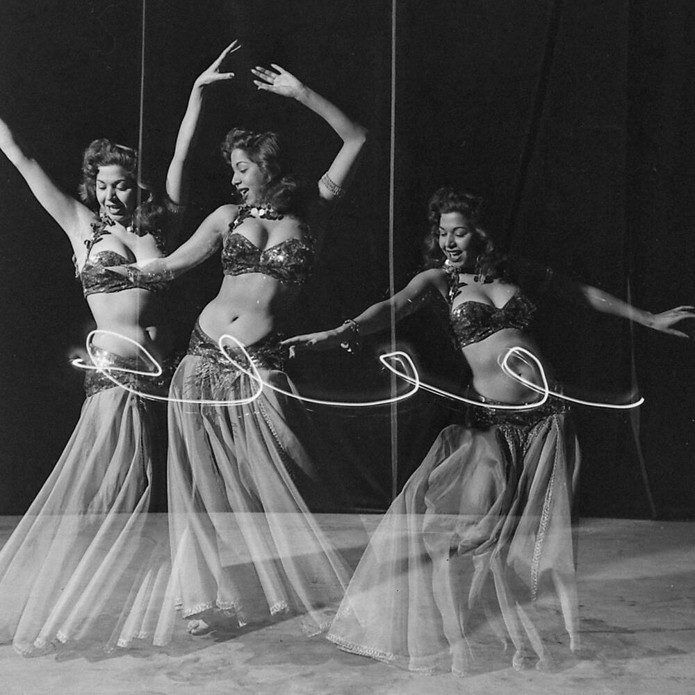 Samia Gamal, een icoon van de Egyptische cinema en de eerste Oriëntaalse danseres die de wereld veroverde, belichaamt de gratie en moderniteit van het naoorlogse Caïro. Dit portret legt haar vast in de dynamiek van haar dans, op de grens tussen traditie en nieuwe vrijheid. Als muze van regisseur Farid al-Atrash bracht ze Oriëntaalse dans naar de grote internationale podia, van Parijs tot New York © The Picture Collection LLC. LIFE is een handelsmerk van Tl Gotham Inc.