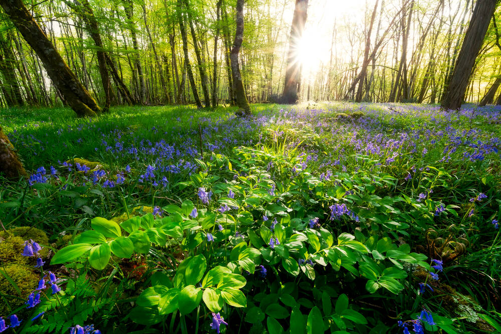Zoals elk jaar is het bos, in volle lentebloei, hier en daar in het blauw gehuld... De onopvallende boshyacinten komen uit de grond en bieden een show die een paar weken duurt terwijl ze bloeien. Ik stond vroeg op om de zonsopgang in het bos te fotograferen. De natuur was op haar best en deze foto geeft mijn visie op dit speciale moment weer.