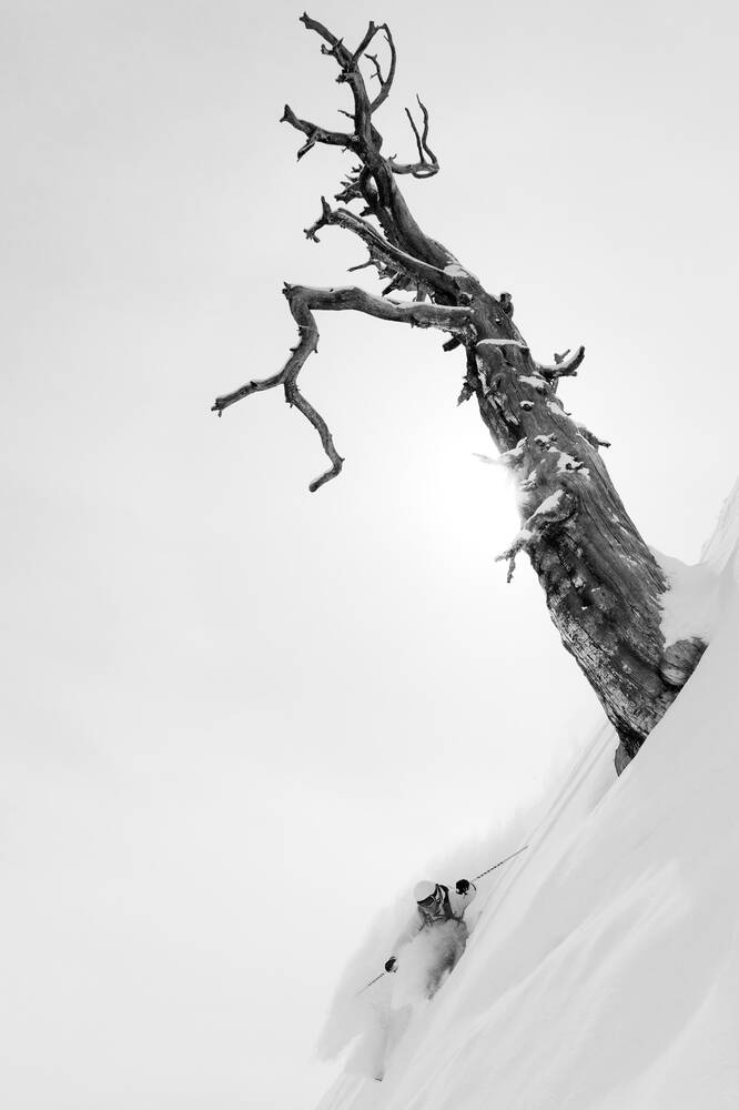 skiër voor een boom in de VSFoto personaliseren